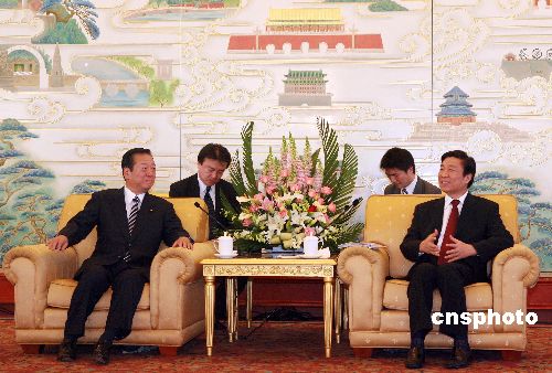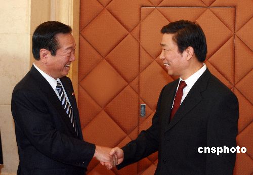 十二月七日,中共中央政治局委員、中央書記處書記、中央組織部部長李源潮在北京會見以黨首小澤一郎為團(tuán)長的日本民主黨大型代表團(tuán)。中新社發(fā) 廖文靜 攝
