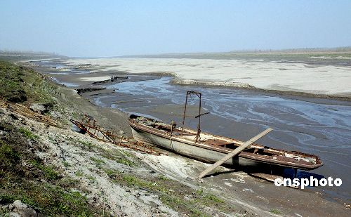 11月7日,一條船擱淺在黃石市牯牛洲的長江沙灘上。由于今年雨水少,長江黃石段水位下降嚴(yán)重,西塞山以下江面凸現(xiàn)大面積沙灘,長江航運(yùn)及居民用水影響嚴(yán)重。據(jù)市水文水資源勘測(cè)局技術(shù)人員介紹,目前長江黃石段水位是11.51米,比去年同期低1.6米,是近二十年來的最低點(diǎn)。交通部長江航務(wù)管理局6日宣布長江中游因枯水形勢(shì)嚴(yán)峻進(jìn)入二級(jí)橙色預(yù)警狀態(tài),長江黃石段許多水面露出了淺灘。中新社發(fā) 邱孝威 攝