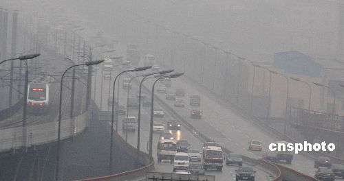 12月11日,大連東北快速路上,霧天路滑,車輛減速行駛。當日,受惡劣天氣影響,遼寧高速公路全線封閉。中新社發(fā) 劉德斌 攝