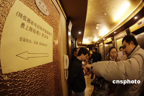 1月22日,備受中國公眾矚目的中國手機漫游費聽證會在北京舉行。根據(jù)中國信息產(chǎn)業(yè)部去年5月進行的網(wǎng)上民意調(diào)查,近64%的手機用戶擁護將漫游通話話費標準降低至本地通話費用水平。中新社發(fā) 吳芒子 攝