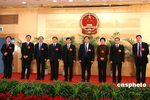 一月二十三日下午,當(dāng)選河南省新一屆政府省長、副省長與媒體見面。從右至左為李成玉、李克、孔玉芳、史濟(jì)春、秦玉海、張大衛(wèi)、徐濟(jì)超、宋璇濤、劉滿倉。中新社發(fā) 史寶銀 攝