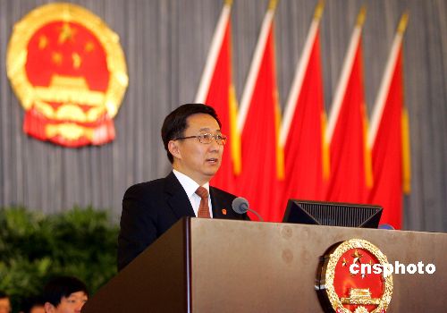 圖為市長韓正作上海市人民政府工作報告。