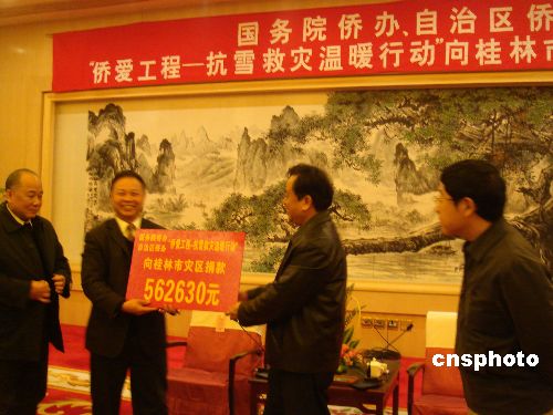 “僑愛(ài)工程—抗雪救災(zāi)溫暖行動(dòng)”向桂林災(zāi)區(qū)捐款
