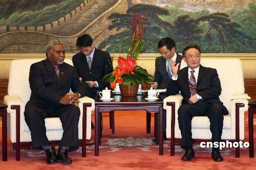 圖:吳邦國會(huì)見瓦努阿圖議長(zhǎng)阿沃克