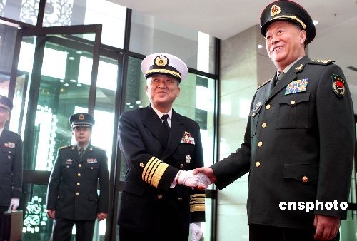 解放軍總參謀長陳炳德(右)與日本自衛(wèi)隊聯(lián)合參謀長會晤。