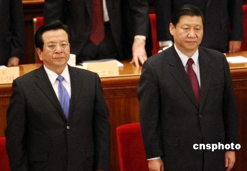 發(fā)表評論 3月3日下午,全國政協(xié)十一屆一次會議在北京人民大會堂開幕,國家副主席曾慶紅(左)、中共中央政治局常委習近平出席。中新社發(fā) 任晨鳴 攝
