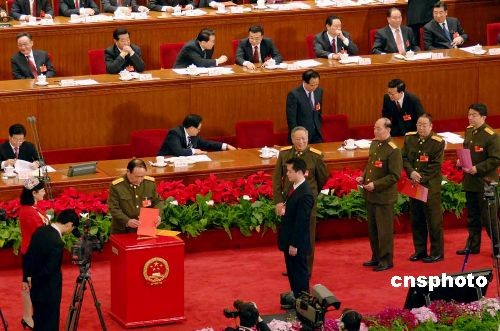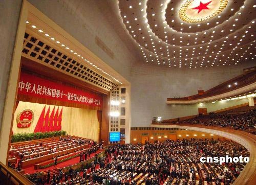 三月十五日上午,十一屆全國人大一次會議第五次全體會議在北京人民大會堂舉行,表決關于批準國務院機構改革方案的決定草案,選舉十一屆全國人大常委會委員長、副委員長,選舉國家主席、副主席及中央軍委主席等。中新社發(fā) 王東明 攝