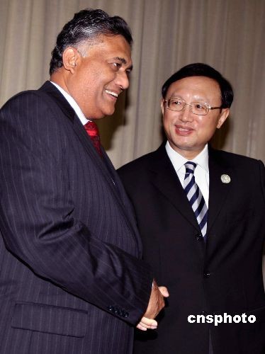 中國外交部部長楊潔篪,4月10日下午在海南省三亞市亞龍灣的喜來登酒店,與斯里蘭卡外長波格拉加馬會談。中新社發(fā) 任晨鳴 攝
