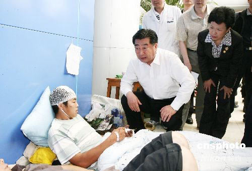 回良玉趕赴綿陽(yáng)災(zāi)區(qū)察看災(zāi)情 看望受災(zāi)群眾