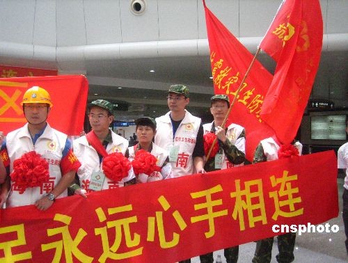五月二十日,首批海南青年醫(yī)療衛(wèi)生抗震救災(zāi)志愿者服務(wù)隊(duì)共二十五人,從海口美蘭機(jī)場(chǎng)出發(fā),前往四川綿陽(yáng)平武縣抗震救災(zāi)。該批具有專業(yè)醫(yī)療技能及抗震經(jīng)驗(yàn)的志愿者,來(lái)自海南省人民醫(yī)院、海南省及各市縣疾控中心,由海南省衛(wèi)生廳及共青團(tuán)海南省委共同招募。