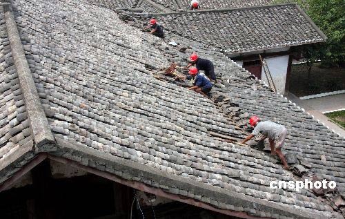 圖為施工隊伍正抓緊修復(fù)明月小學(xué)的部分教室。2008年5年12日四川汶川大地震波及華鎣市,震感強烈,致使該市學(xué)校大面積不同程度受災(zāi),據(jù)統(tǒng)計,有11所學(xué)校受災(zāi),受損面積8200平方米,損失680萬余元,致使近1500名學(xué)生不能正常行課。災(zāi)情發(fā)生后,四川華鎣市委市政府立即組織市教育局和各學(xué)校迅速行動,啟動了應(yīng)急預(yù)案,各級領(lǐng)導(dǎo)在第一時間分赴受災(zāi)學(xué)校指揮指導(dǎo)抗災(zāi)救災(zāi)工作,確保了師生生命財產(chǎn)安全,無一例地震傷亡事故發(fā)生;同時,他們在組織專家鑒定后,立即籌集資金,組織施工隊伍修復(fù)損壞不大的教室,使學(xué)生盡快復(fù)課。