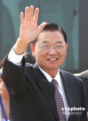 十一日下午三時(shí)十五分許,臺(tái)灣海峽交流基金會(huì)董事長江丙坤率海基會(huì)代表團(tuán)抵達(dá)北京首都機(jī)場,向在場的中外媒體揮手致意。中新社發(fā) 趙振清 攝