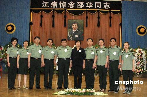 6月26日,解放軍三零一醫(yī)院的義務(wù)人員在北京悼念中國攝影家協(xié)會(huì)主席邵華。圖中左五左六為邵華之子毛新宇和妻子劉濱。邵華將軍于6月24日在北京因病去世,終年69歲。中新社發(fā) 吳小地 攝