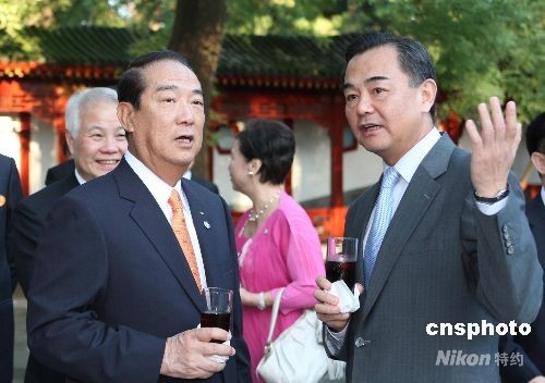 8月15日,中共中央臺灣工作辦公室主任王毅在北京釣魚臺國賓館會見并宴請親民黨主席宋楚瑜一行。中新社發(fā) 廖文靜 攝