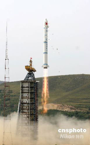 北京時間9月6日上午11時25分,中國“環(huán)境與災害監(jiān)測預報小衛(wèi)星”(簡稱“環(huán)境減災”)A、B衛(wèi)星以一箭雙星方式,在太原衛(wèi)星發(fā)射中心由“長征二號丙”運載火箭成功發(fā)射升空。中新社發(fā) 孫自法 攝