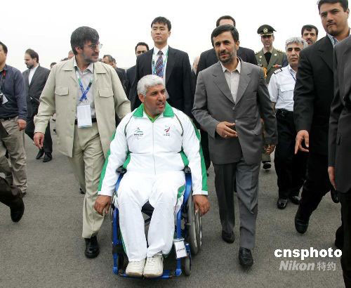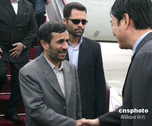 9月6日,伊朗總統(tǒng)艾哈邁迪-內(nèi)賈德飛抵首都國際機場,前來出席北京殘奧會開幕式及相關(guān)活動。中新社發(fā) 富田 攝