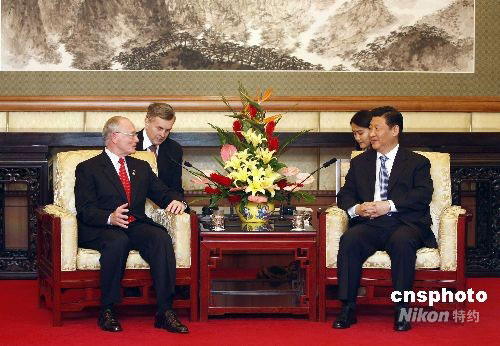 9月8日,中國國家副主席習(xí)近平在北京釣魚臺國賓館會見美國退伍軍人事務(wù)部部長皮克。中新社發(fā) 盛佳鵬 攝