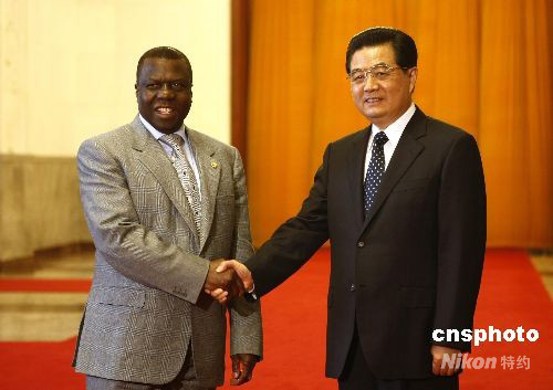 9月16日,中國國家主席胡錦濤在北京人民大會堂與幾內(nèi)亞比紹總統(tǒng)維埃拉舉行會談。中新社發(fā) 盛佳鵬 攝