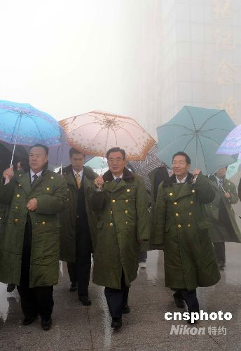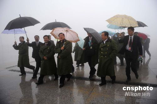 9月25日,寧夏六盤山寒雨紛飛,賀國(guó)強(qiáng)率團(tuán)冒雨參觀位于六盤山主峰上的六盤山紅軍長(zhǎng)征紀(jì)念館。當(dāng)日,賀國(guó)強(qiáng)率中央代表團(tuán)一分團(tuán)繼續(xù)在寧夏固原市展開慰問(wèn)。中新社發(fā) 廖攀 攝