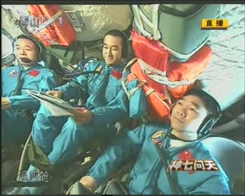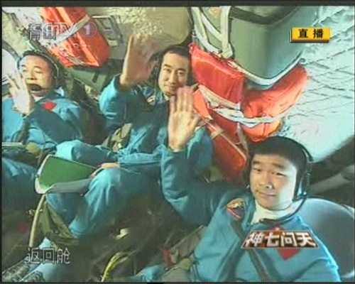 北京時(shí)間9月27日傍晚,在成功實(shí)施出艙活動后,航天員回到返回艙,與在北京航天飛行控制中心的中共中央總書記、國家主席、中央軍委主席胡錦濤進(jìn)行天地通話。