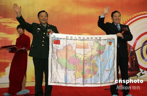 10月1日上午,神舟七號(hào)載人飛船返回艙在其誕生地——中國(guó)航天科技集團(tuán)公司所屬中國(guó)空間技術(shù)研究院舉行開艙暨搭載物交接儀式,伴隨三位中國(guó)航天員太空飛行六十八小時(shí)二十七分鐘的一批特殊“乘客”一一精彩亮相,隨后各歸其主。圖為隨“神七”飛天的絲質(zhì)中國(guó)地圖在現(xiàn)場(chǎng)展示,將由解放軍總參謀部測(cè)繪局珍藏。中新社發(fā) 孫自法 攝