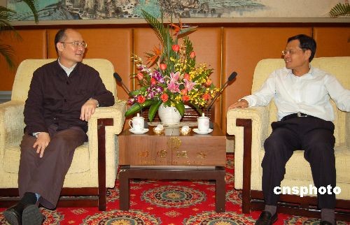 10月27日,廣西壯族自治區(qū)副主席陳武(右)在廣西南寧與國務(wù)院僑辦副主任趙陽會(huì)見。陳武感謝多年來國僑辦對(duì)廣西的大力支持,趙陽肯定了近年來廣西的僑務(wù)工作,并表示國僑辦將為廣西的發(fā)展提供僑力方面的資源支持。中新社發(fā) 劉萬強(qiáng) 攝