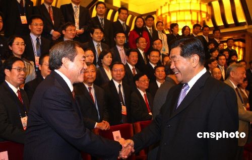 10月29日,中國全國政協(xié)主席賈慶林在北京釣魚臺國賓館會見第五屆世界華人論壇代表。中新社發(fā) 廖文靜 攝