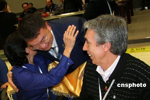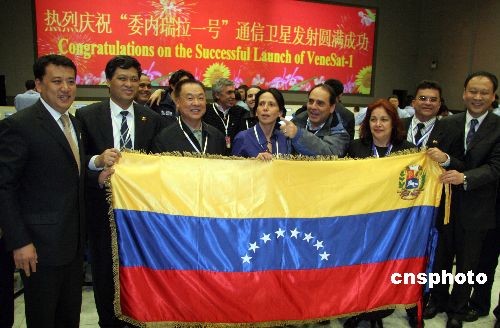 中委雙方在西昌衛(wèi)星發(fā)射中心指控大廳共同慶祝衛(wèi)星發(fā)射成功。 北京時(shí)間10月30日凌晨零時(shí)53分,中國在西昌衛(wèi)星發(fā)射中心用“長征三號(hào)乙”運(yùn)載火箭,將“委內(nèi)瑞拉一號(hào)”通信衛(wèi)星成功送入預(yù)定軌道。這是中國首次向拉丁美洲用戶提供整星出口和在軌交付服務(wù)。中新社發(fā) 孫自法 攝