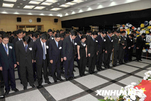 發(fā)表評論  11月3日,中國駐蘇丹大使館舉行儀式,向日前在蘇丹被武裝分子綁架后遇害的5名同胞告別。中國駐蘇丹大使館工作人員、中國政府處理在蘇丹被綁架中國工人善后事宜工作組成員、中國石油天然氣集團公司負責(zé)人和在蘇丹中資機構(gòu)代表等200多人出席了儀式。中國石油天然氣集團公司9名員工2008年10月18日在蘇丹西南部一施工現(xiàn)場遭武裝分子綁架,其中5人遇害,另4人獲救。 新華社記者邵杰攝