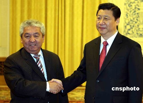 11月12日下午,中國(guó)國(guó)家副主席習(xí)近平在北京人民大會(huì)堂會(huì)見(jiàn)來(lái)訪的吉爾吉斯斯坦外長(zhǎng)卡拉巴耶夫。中新社發(fā) 任晨鳴 攝
