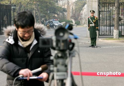 12月8日,新一輪朝核問題六方會談代表團(tuán)團(tuán)長會將于當(dāng)日下午在北京舉行。此次會談是在今年7月以后時(shí)隔5個(gè)月舉行,韓、朝、美、中、俄、日六國代表團(tuán)長將商討核驗(yàn)證議定書的問題和棄核第二階段時(shí)間表等。圖為在釣魚臺國賓館門外等候會議開始的記者。中新社發(fā) 富田 攝