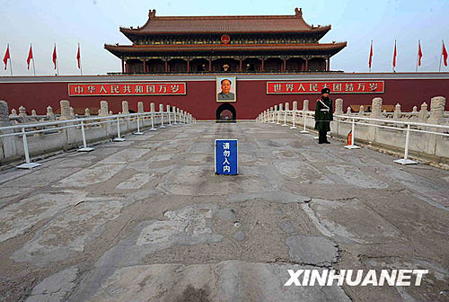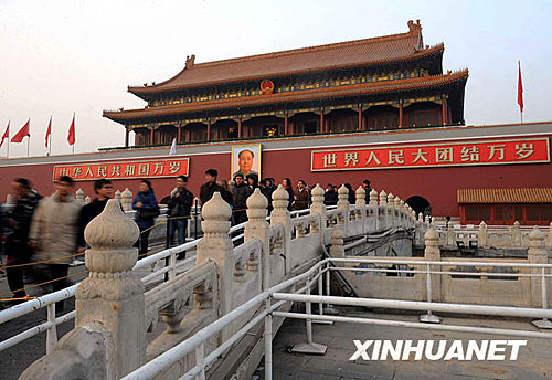 據(jù)北京市文物局9日透露,為迎接2009年國慶60周年,確保游客和文物安全,北京市文物局已于近日啟動(dòng)了天安門金水橋加固修繕工程,整個(gè)工程預(yù)計(jì)將于2009年5月完工。天安門金水橋是整個(gè)天安門景觀的重要組成部分,因游客眾多以及風(fēng)化等自然因素,天安門金水橋橋面此前多處出現(xiàn)破損,欄桿部分也出現(xiàn)裂縫,存在一定的安全隱患。新華社記者羅曉光攝