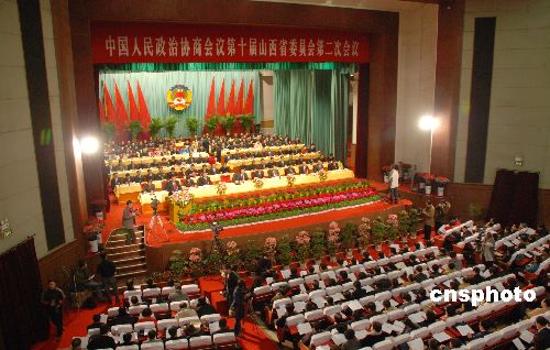 一月九日下午三時(shí),山西省政協(xié)十屆二次會議在太原工人文化宮拉開帷幕。山西省委書記張寶順、山西省代省長王君出席,五百二十九位山西省政協(xié)委員參加會議,會議議程包括選舉政協(xié)第十屆山西省委員會新主席等。中新社發(fā) 張雷杰 攝