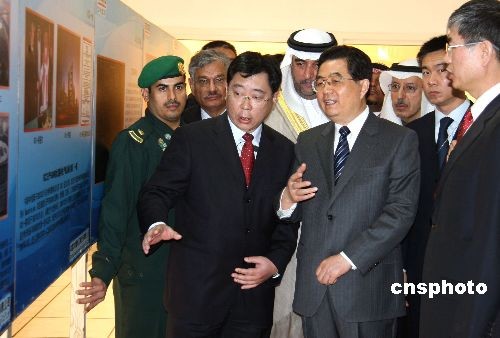 當(dāng)?shù)貢r(shí)間2月11日上午,正在沙特進(jìn)行國(guó)事訪問的中國(guó)國(guó)家主席胡錦濤,來到利雅得水泥公司,參觀由中材國(guó)際承建的水泥生產(chǎn)線項(xiàng)目。中新社發(fā) 齊彬 攝