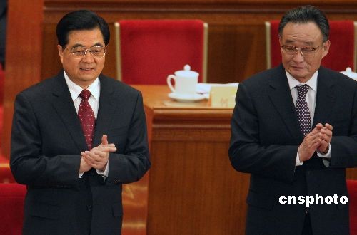 3月3日下午,全國(guó)政協(xié)十一屆二次會(huì)議在北京人民大會(huì)堂開幕,胡錦濤、吳邦國(guó)等黨和國(guó)家領(lǐng)導(dǎo)人出席。中新社發(fā) 任晨鳴 攝