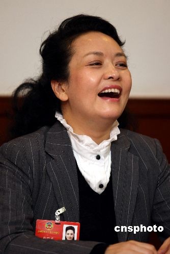 3月4日,全國政協(xié)十一屆二次會議進行分組討論,彭麗媛被青聯(lián)界其他委員的風趣發(fā)言逗樂。中新社發(fā) 傅丹丹 攝