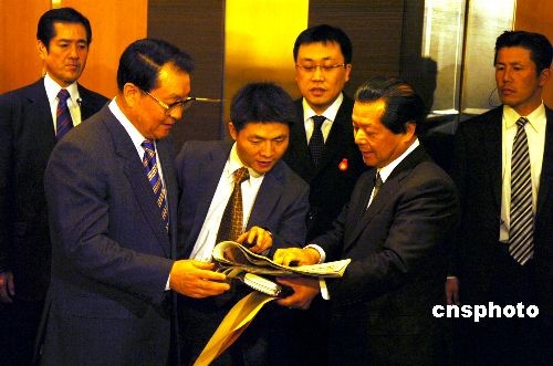 正在日本進(jìn)行友好訪問(wèn)的中共中央政治局常委李長(zhǎng)春與日本主要媒體界人士進(jìn)行了廣泛的接觸和深入的交流。他不僅于3月30日晚宴請(qǐng)了日本14家主要媒體負(fù)責(zé)人,還計(jì)劃于31日訪問(wèn)NHK電視臺(tái)、讀賣(mài)新聞社、凸版印刷公司。圖為3月30日晚,日本媒體界人士向李長(zhǎng)春贈(zèng)送報(bào)紙。中新社發(fā) 朱沿華 攝
