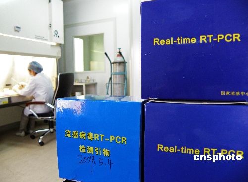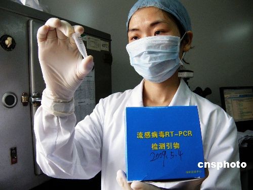 2009年5月5日,湖北省宜昌市疾病預(yù)防控制中心國家級流感網(wǎng)絡(luò)實(shí)驗室內(nèi),工作人員在展示和預(yù)實(shí)驗甲型H1N1流感病毒快速診斷試劑。甲型H1N1流感病毒快速診斷試劑由中國疾病預(yù)防控制中心和中國醫(yī)學(xué)科學(xué)院研制,可以在12小時內(nèi)檢測出樣本是否攜帶甲型H1N1流感病毒。據(jù)悉,甲型H1N1流感病毒快速診斷試劑已于2009年5月4日配發(fā)到中國84個流感網(wǎng)絡(luò)實(shí)驗室。中新社發(fā) 劉君鳳 攝