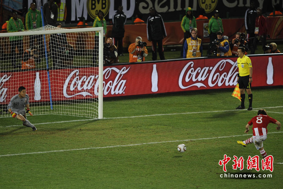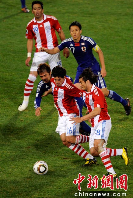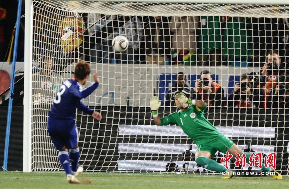 29日晚,南非世界杯1/8決賽第七場(chǎng)比賽比勒陀利亞的洛夫托斯球場(chǎng)拉開戰(zhàn)幕,由巴拉圭隊(duì)迎戰(zhàn)日本隊(duì)。120分鐘比賽結(jié)束時(shí),雙方均沒有建樹,場(chǎng)上比分始終保持在0-0。在殘酷的點(diǎn)球大戰(zhàn)中,巴拉圭隊(duì)五罰全中,以5-3擊敗日本,挺進(jìn)八強(qiáng)。