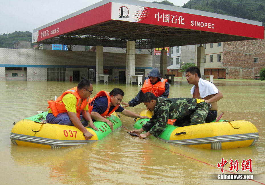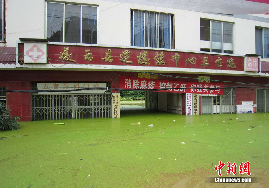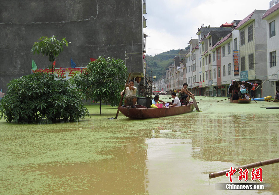 由于遭遇連日暴雨,廣西凌云縣邏樓鎮(zhèn)內(nèi)澇成災(zāi),全鎮(zhèn)一片汪洋,積水深達(dá)2米多高,民眾只能用小機(jī)船和自制排伐作為交通工具。由于該鎮(zhèn)所在地為一個(gè)小盤(pán)地,沒(méi)有排水的地方,估計(jì)一個(gè)月后積水才能自然排完。6月27日20時(shí)至29日,廣西凌云縣遭遇罕見(jiàn)強(qiáng)降雨襲擊,造成嚴(yán)重洪澇災(zāi)害。初步統(tǒng)計(jì),當(dāng)?shù)匾丫o急轉(zhuǎn)移一萬(wàn)多人。圖為30日所攝邏樓鎮(zhèn)被淹景象。黃燕飛 攝