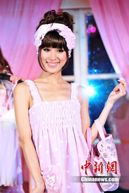 近日,上海,香港名模Angelababy為日本某著名內(nèi)衣品牌進駐中國火熱助陣,在現(xiàn)場100多家國內(nèi)外知名媒體的共同見證下,性感模特穿著本季新品依次驚喜亮相。粉色的甜蜜情懷、黑色的性感蕾絲、紫色的夢幻情懷、豹紋的狂野浪漫…知名設(shè)計師帶來的令人眼花繚亂的潮流設(shè)計,掀起一場有關(guān)“可愛 快樂 性感”的夏日狂歡。中新社記者 李學仕 攝