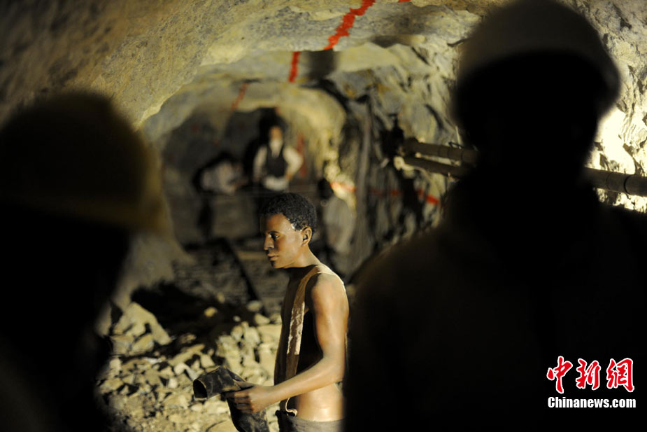 南非的金礦主要分布在奧蘭治河的支流瓦爾河流域,大體成一半圓形,延伸500公里,素有“金弧”之稱,而礦區(qū)主體便是以約翰內(nèi)斯堡為中心,向東西延伸。 2010世界杯主賽場(chǎng)——約翰內(nèi)斯堡足球城球場(chǎng)便建在一片金礦之中,被當(dāng)?shù)厝诵稳轂椤氨唤鸬V包圍的球場(chǎng)”。近日,金礦試驗(yàn)新型炸藥,爆炸聲傳到足球城球場(chǎng),還引起全世界媒體的虛驚一場(chǎng)。 在約翰內(nèi)斯堡“皇冠金礦”舊址上建起的主題公園“黃金城”中,游客在這里可以看到,18世紀(jì)末淘金熱潮時(shí)礦場(chǎng)附近造幣廠、餐廳、診所的舊模樣。“皇冠金礦”因?yàn)榈V石含金量日趨下降,于1977年正式停產(chǎn)。中新社發(fā) 廖攀 攝