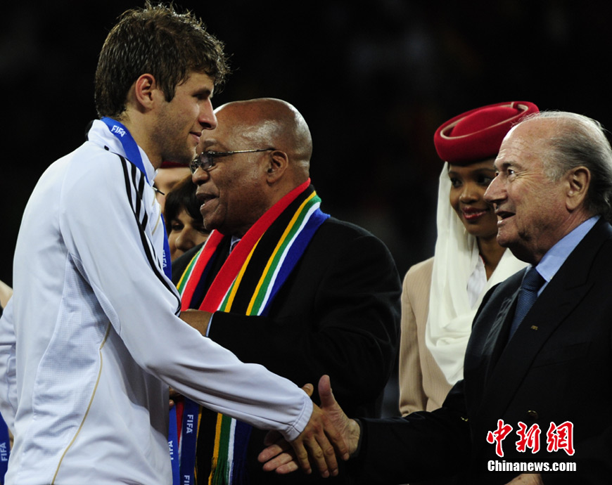 北京時(shí)間7月11日凌晨2:30,南非世界杯進(jìn)行了三四名決賽的爭(zhēng)奪戰(zhàn),由烏拉圭在伊麗莎白港的納爾遜·曼德拉海灣球場(chǎng)迎戰(zhàn)德國(guó)隊(duì)。最終在一場(chǎng)進(jìn)球大戰(zhàn)中,德國(guó)隊(duì)?wèi){借第82分鐘赫迪拉的進(jìn)球一錘定音,以3-2險(xiǎn)勝對(duì)手,獲得南非世界杯第三名。