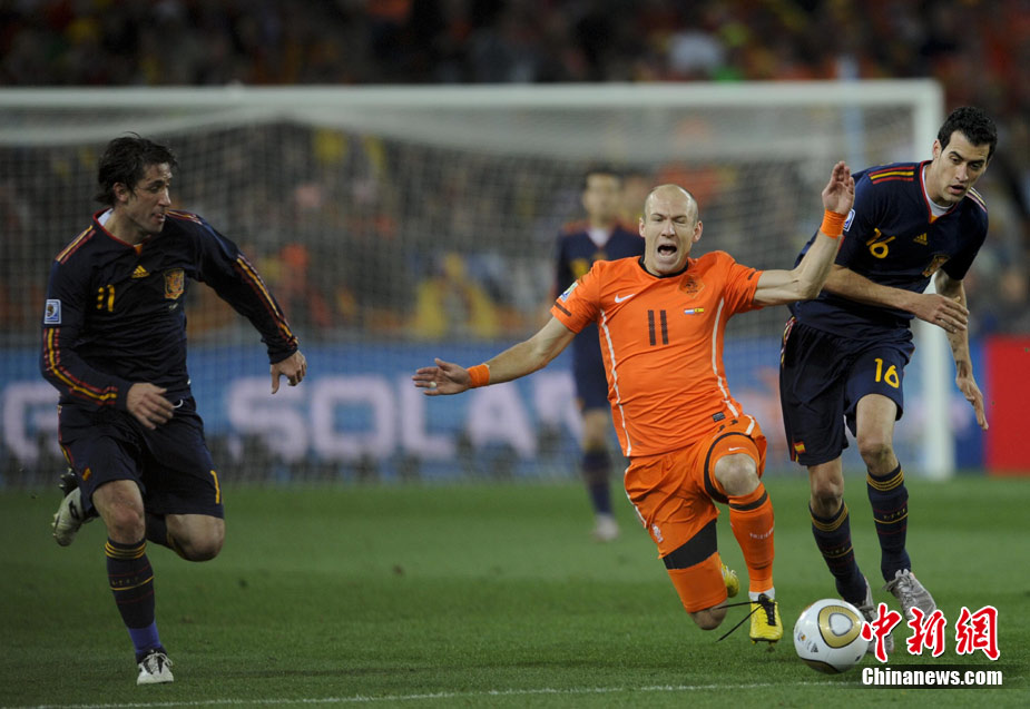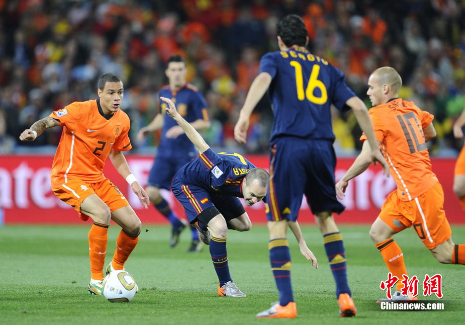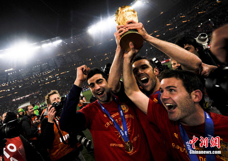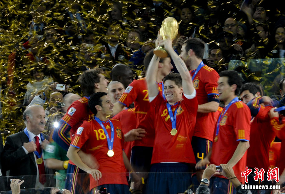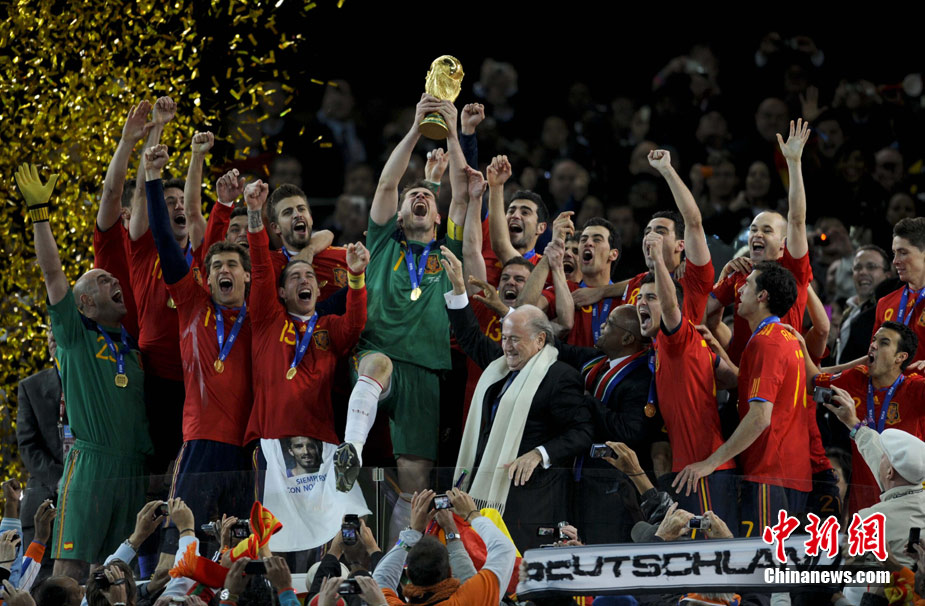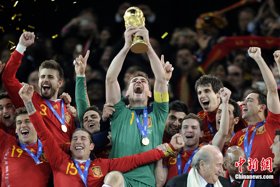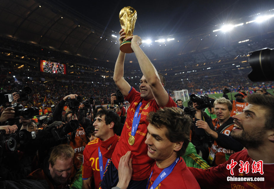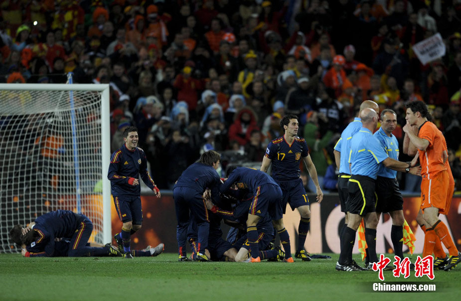 北京時(shí)間7月12日凌晨2:30,南非世界杯迎來了最終的決賽,在約翰內(nèi)斯堡的足球城球場由荷蘭隊(duì)對(duì)陣西班牙。最終雙方經(jīng)過120分鐘鏖戰(zhàn),伊涅斯塔在第116分鐘攻入全場唯一一粒進(jìn)球,絕殺十人應(yīng)戰(zhàn)的荷蘭隊(duì),史上首次奪得冠軍。