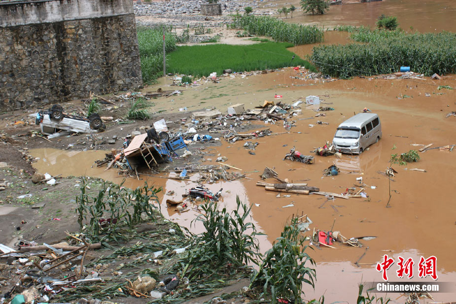 7月13日凌晨4時(shí)許,云南昭通巧家縣小河鎮(zhèn)發(fā)生山洪災(zāi)害,已造成多人傷亡,并有50余戶民房在災(zāi)害中倒塌、損毀。中新社發(fā) 汪波 攝