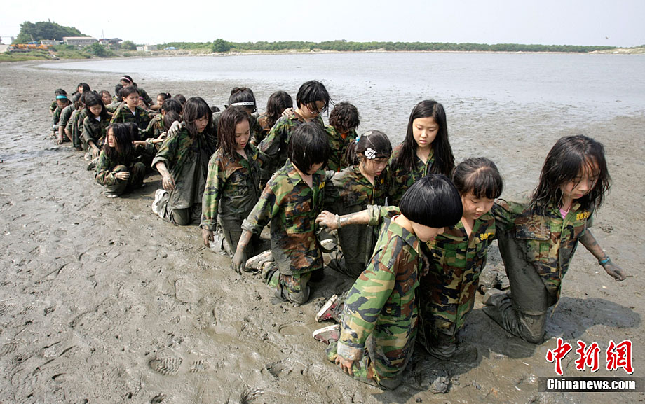 當?shù)貢r間7月15日,來自韓國首都首爾的156名小學生參加了在安山市大阜島為期3天的軍訓夏令營。