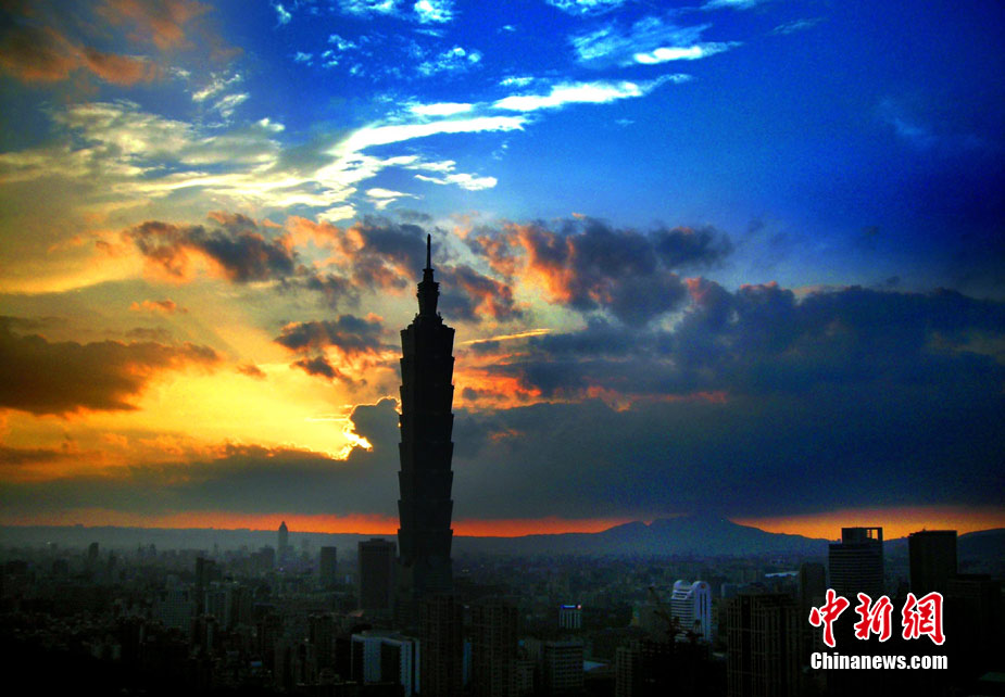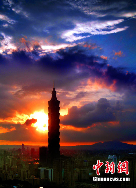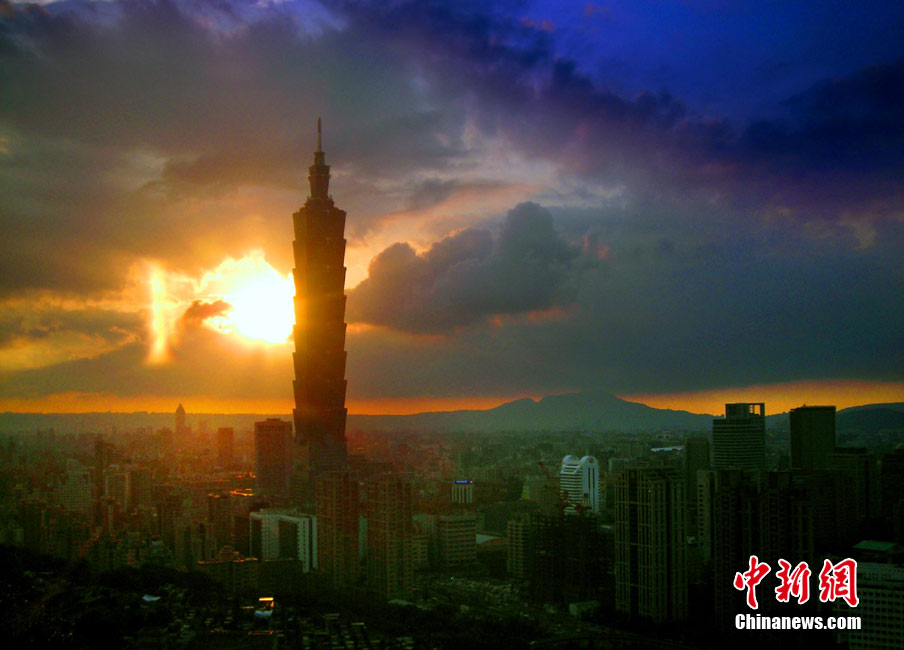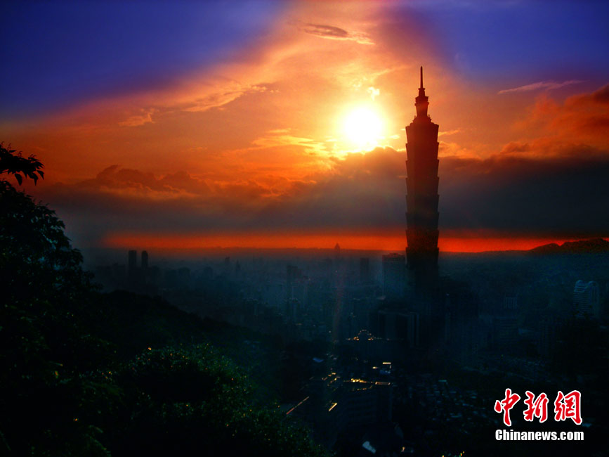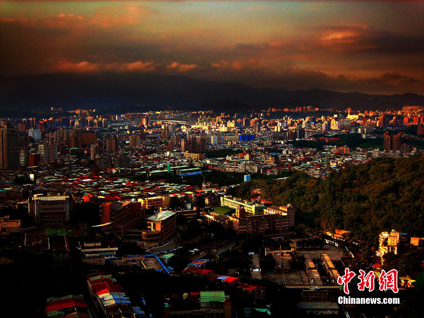 7月15日傍晚,臺(tái)北市一陣電閃雷鳴過(guò)后,太空霞光四射,從象山俯瞰市區(qū),101摩天大樓聳入云霄,景觀如畫(huà)。美麗的臺(tái)北市地處盆地,氣候多變,夏季的城市景色也時(shí)常變幻莫測(cè)。中新社記者 宋吉河 攝