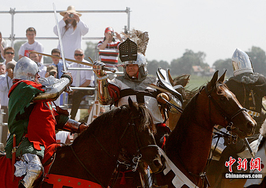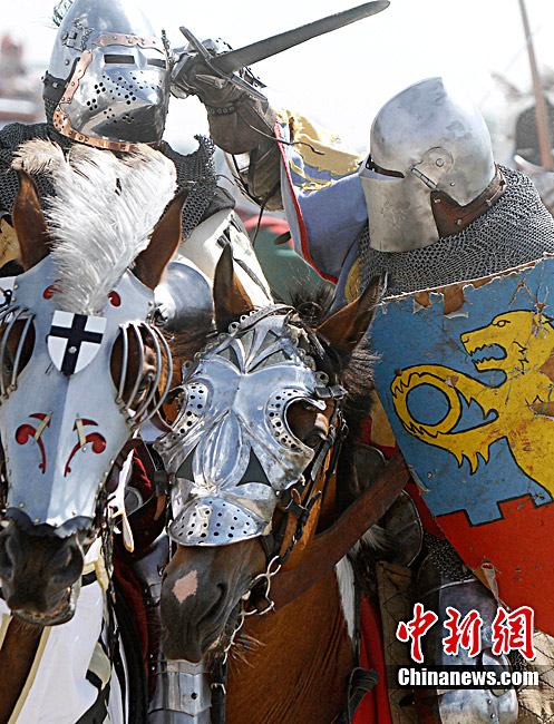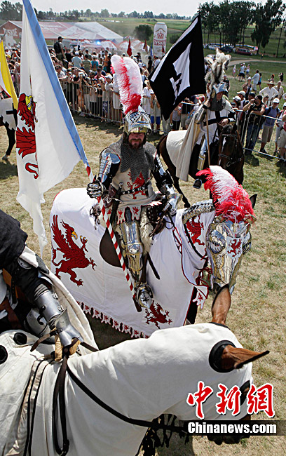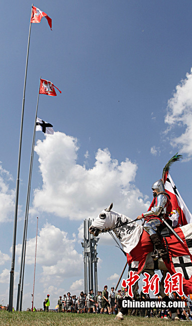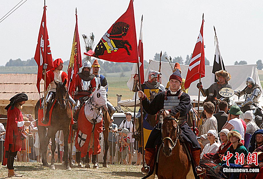 當(dāng)?shù)貢r(shí)間7月15日,波蘭“格隆瓦爾德之戰(zhàn)”600周年紀(jì)念日,約1500名身著古代騎士服的“騎士”從歐洲各國(guó)來到波蘭北部重現(xiàn)了這場(chǎng)著名的戰(zhàn)役。格隆瓦爾德之戰(zhàn),發(fā)生于公元1410年,是波蘭國(guó)王兼立陶宛大公雅蓋沃領(lǐng)導(dǎo)抗擊條頓十字軍團(tuán)的戰(zhàn)爭(zhēng)。在此戰(zhàn)中,擊斃當(dāng)時(shí)十字軍包括大團(tuán)長(zhǎng)在內(nèi)幾乎全部的高級(jí)首腦,也是十字軍沒落的一個(gè)標(biāo)志,此戰(zhàn)后新的大團(tuán)長(zhǎng)撤出馬爾堡,從此十字軍一蹶不振。