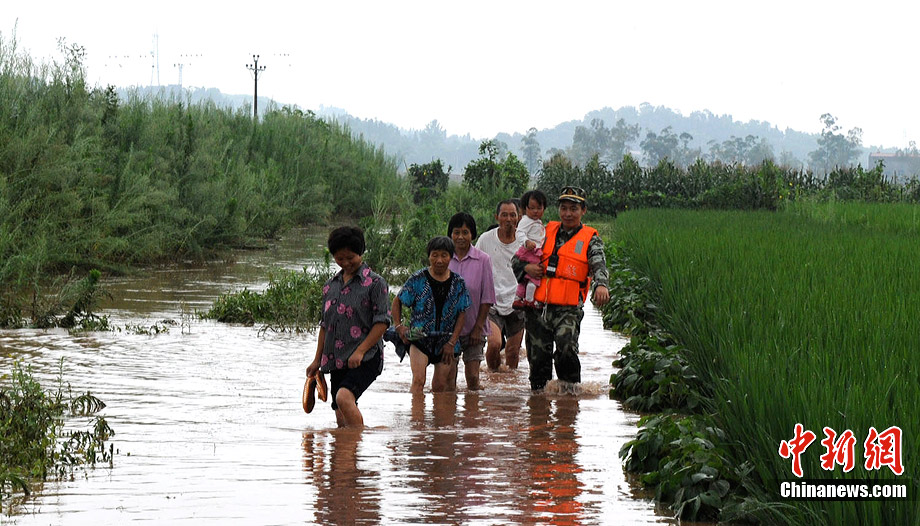 7月18日,記者從四川樂山市有關(guān)部門獲悉,持續(xù)的強降雨致使大渡河河水猛烈上漲,造成沙灣區(qū)嘉農(nóng)鎮(zhèn)鎮(zhèn)內(nèi)四個村莊被淹、群眾被困。險情發(fā)生后,樂山市公安消防支隊第一時間啟動抗洪搶險應(yīng)急救援預(yù)案,70余名消防官兵快速反應(yīng)全力以赴投入抗洪救災(zāi),安全轉(zhuǎn)移千余名被困群眾。劉福平 攝