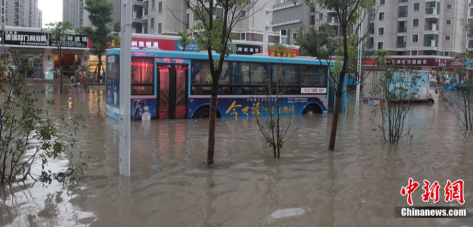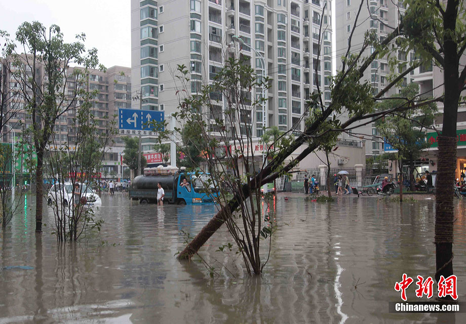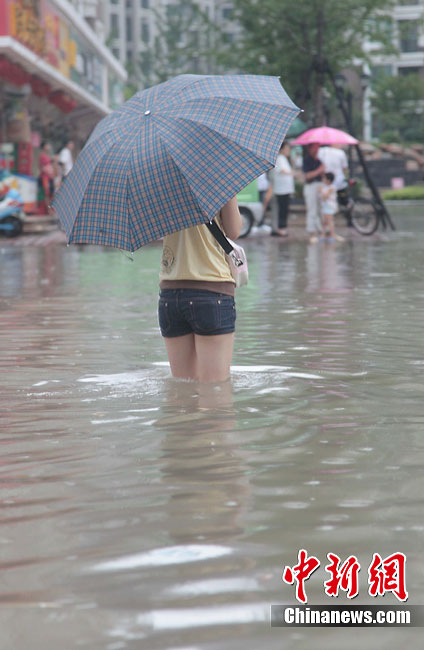 7月18日下午,安徽合肥降大暴雨,風(fēng)力達(dá)7-8級(jí),導(dǎo)致市區(qū)多處內(nèi)澇,市內(nèi)交通嚴(yán)重堵塞。淮河防總17日發(fā)布預(yù)警,淮河干流受持續(xù)降雨影響,將出現(xiàn)一次較大的洪水過程,淮河流域的降雨和上游來水可能使安徽省面臨長江、淮河兩線抗洪作戰(zhàn)的不利局面。中新社發(fā) 張婭子 攝